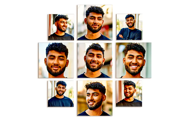 Upload your photos, edit and create using our templates and tools, make payment and confirm