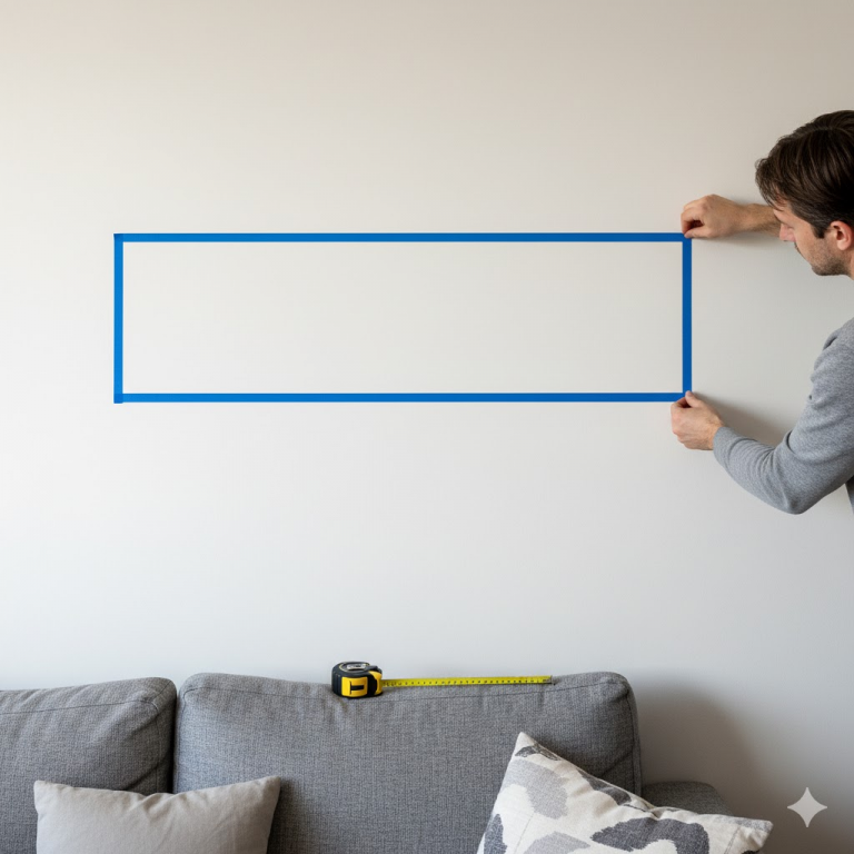 - Stick the tape outline onto your wall in the exact spot you plan to hang it.