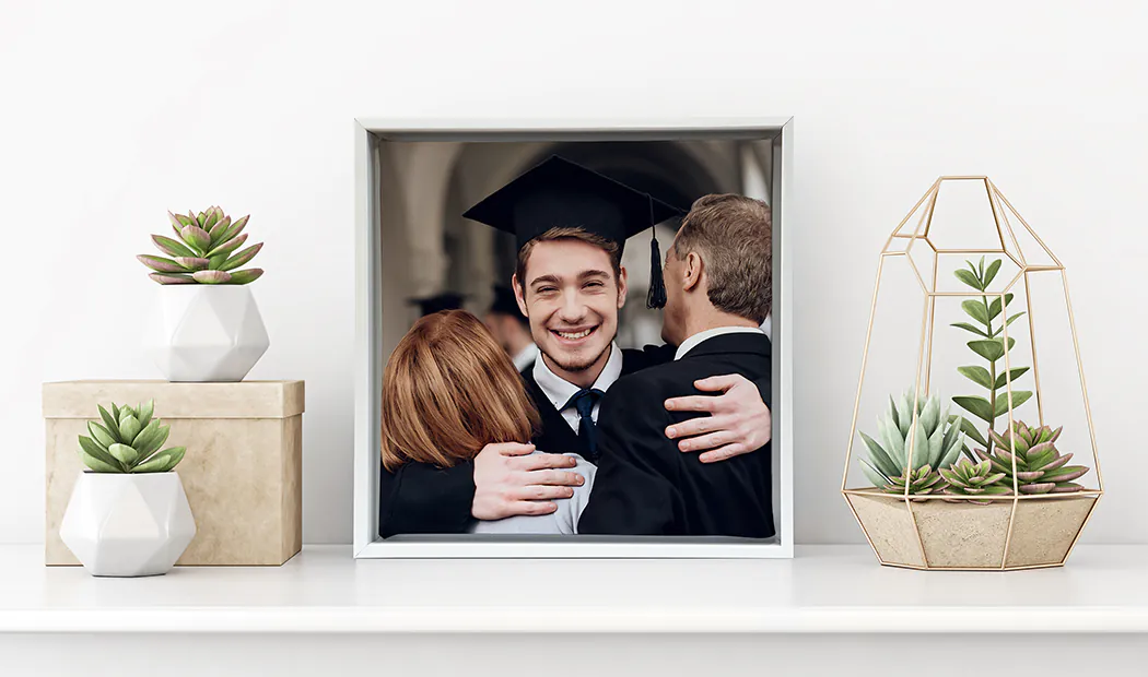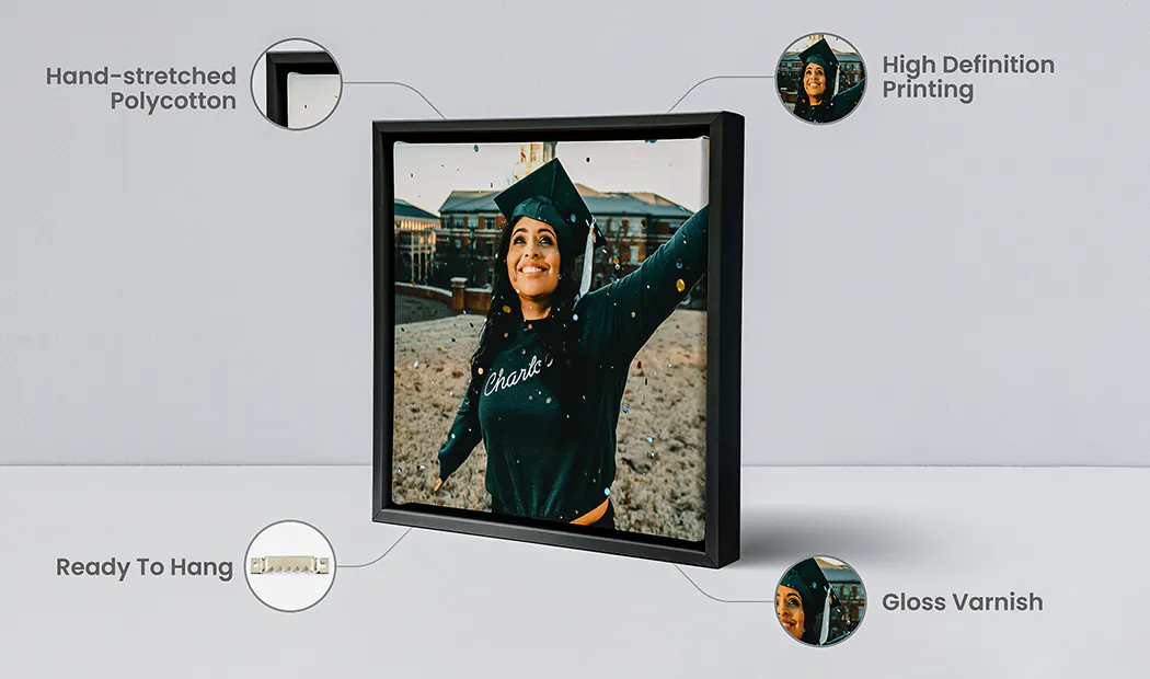 Elevate your grad’s favorite photos with a framed canvas print in just a few simple clicks. As